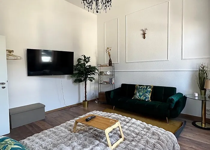 Premium-Apartment Im Duisburger Sueden, Naehe Duesseldorf Flughafen & Messe, Komplett Ausgestattetes Apartment Mit Modernen Altbau-Flair surplombe le jardin et se trouve à environ 5 minutes de marche du Steinhof de Duisburg. Les clients peuvent utiliser un Wi-Fi pour des raisons professionnelles ou de loisirs.